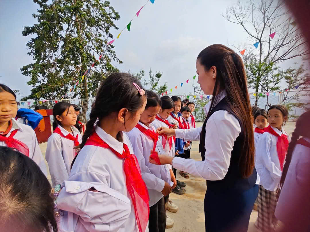 Sau nghi lễ chào cờ trang nghiêm dưới tượng Bác, không khí sân trường trở nên xúc động với Lễ kết nạp Đội viên mới. BGH nhà trường và thầy cô giáo đã tận tay quàng những chiếc khăn quàng đỏ thắm lên vai các em học sinh ưu tú. Ánh mắt lấp lánh niềm tự hào, nụ cười rạng rỡ của các em khi chính thức trở thành Đội viên Thiếu niên Tiền phong Hồ Chí Minh là hình ảnh đẹp nhất của buổi lễ.