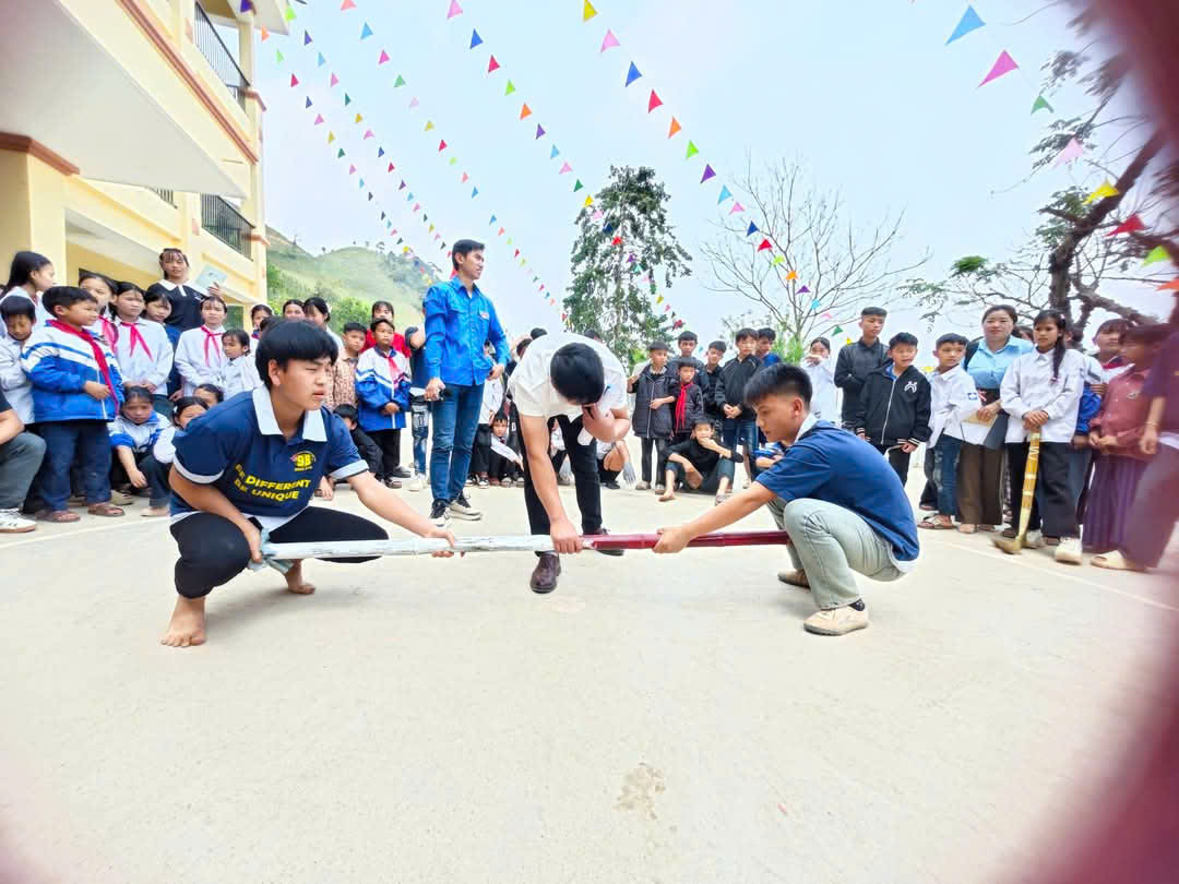 Đẩy gậy kịch tính: Một trong những nội dung thi đấu được mong chờ nhất là môn đẩy gậy. Khác với sự ồn ào của kéo co, sân đấu đẩy gậy lại mang một không khí kịch tính đến nghẹt thở. Hai vận động viên đứng đối diện, nắm chặt cây gậy, tập trung cao độ, dùng hết sức lực và chiến thuật để đẩy đối phương ra khỏi vòng tròn. Mỗi trận đấu là một cuộc so tài về sức bền và sự khéo léo, thu hút sự theo dõi của đông đảo thầy cô và học sinh.